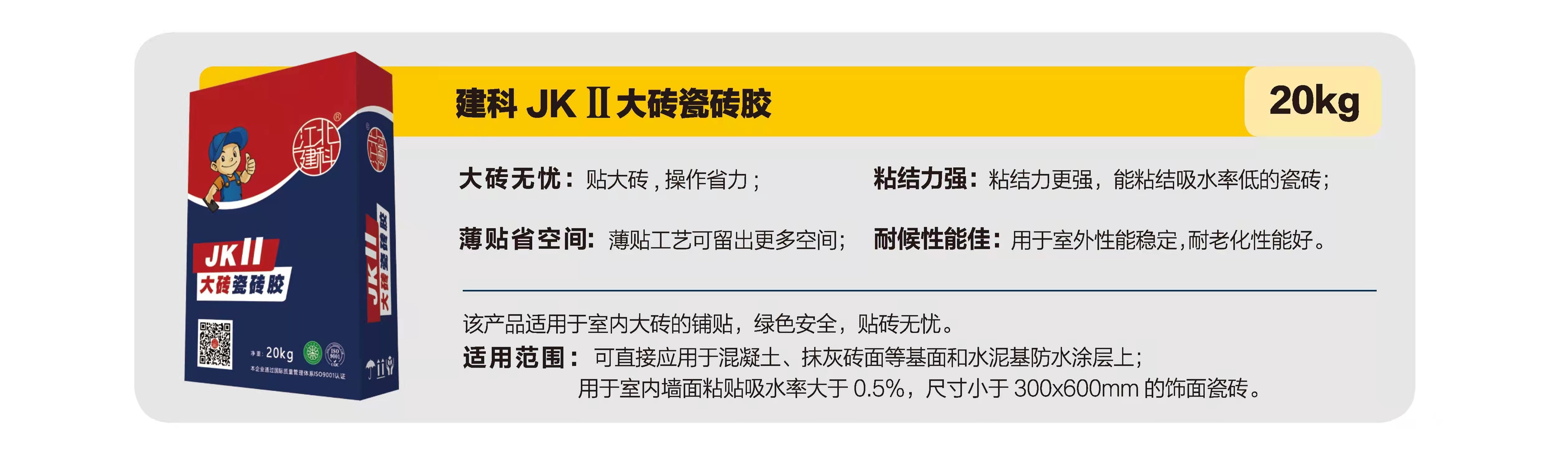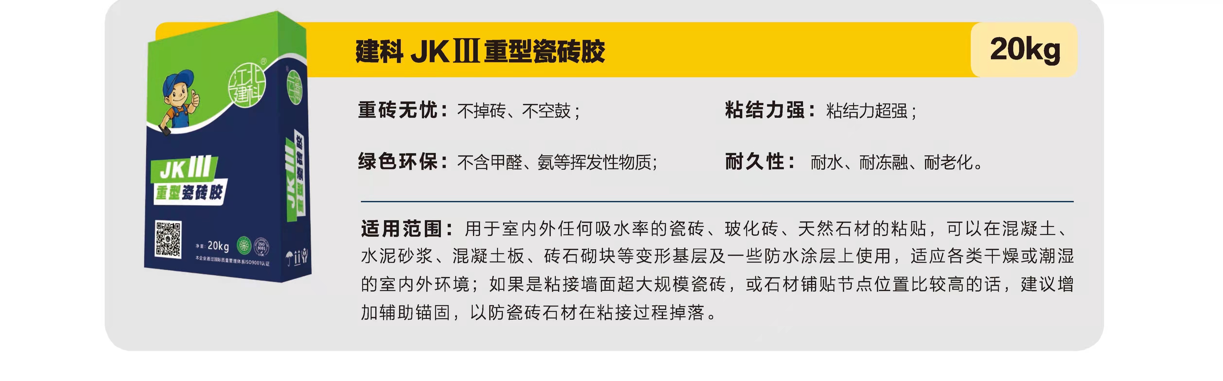 如需鋪貼?;u或較大瓷磚時(shí),可配合建科瓷磚背膠使用;施工溫度不低于5℃。
